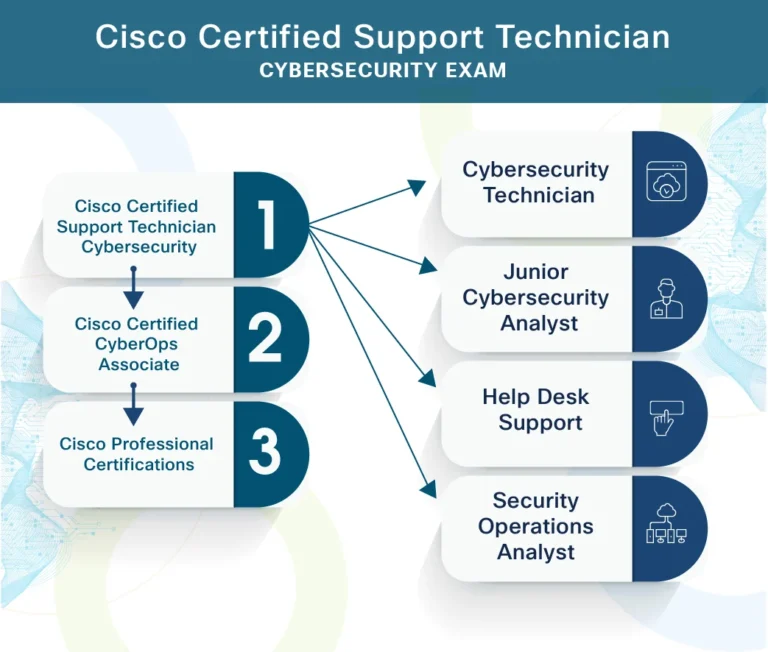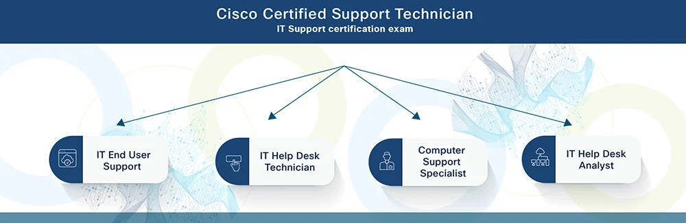 The Cisco Certified Support Technician certification program from Certiport consists of three exams, CCST IT Support, CCST Networking, and CCST Cybersecurity. These exams validate work-ready skills and knowledge for entering and advancing in three of the most in-demand IT fields.